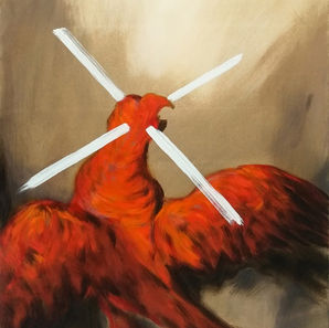 My paintings incorporate classical iconography, the modernist gesture, and digital manipulation to create a space where identity and abjection collide and repulse; an in-between space where narrative and history remain unfixed and open.